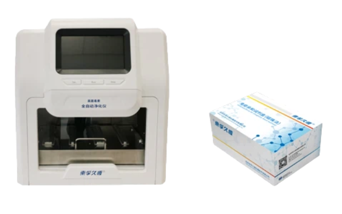 真菌毒素全自動(dòng)凈化儀是用于真菌毒素檢測中樣品自動(dòng)凈化的一款專(zhuān)用儀器。將樣品中真菌毒素提取后,提取液中真菌毒素特異性的吸附在磁珠表面的抗體上,通過(guò)內置磁棒完成全自動(dòng)高通量的磁吸、轉移、洗滌和洗脫全過(guò)程,搭配不同的終端檢測儀器(高效液相色譜儀,超高效液相色譜儀,液質(zhì)聯(lián)用儀等),可實(shí)現樣品中真菌毒素快速、高通量、高精準分析測試。